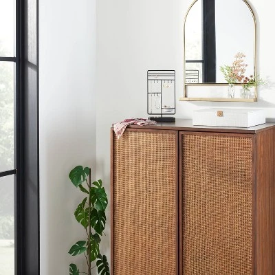 You’ll find all your jewelry conveniently in one spot when it’s organized with this Jewelry Organization Stand from Hearth & Hand™ with Magnolia. Set atop a rectangular base that works as a tray, this jewelry organizer features a top with multiple hooks that offer plenty of space for your earrings, necklaces and more. It’s made with metal in a matte black finish for easy integration with most of your decor styles. Place this matte black jewelry organizer stand on top of the dresser and hang an arched mirror on the wall to create a complete setup for getting ready for the day.